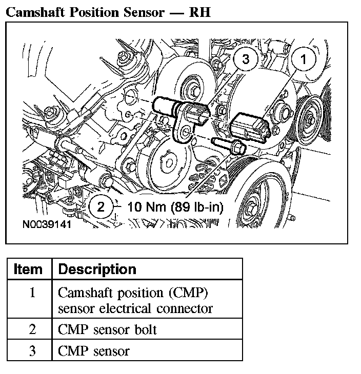- Lubricate the CMP sensor O-ring seal with clean engine oil prior to installation.