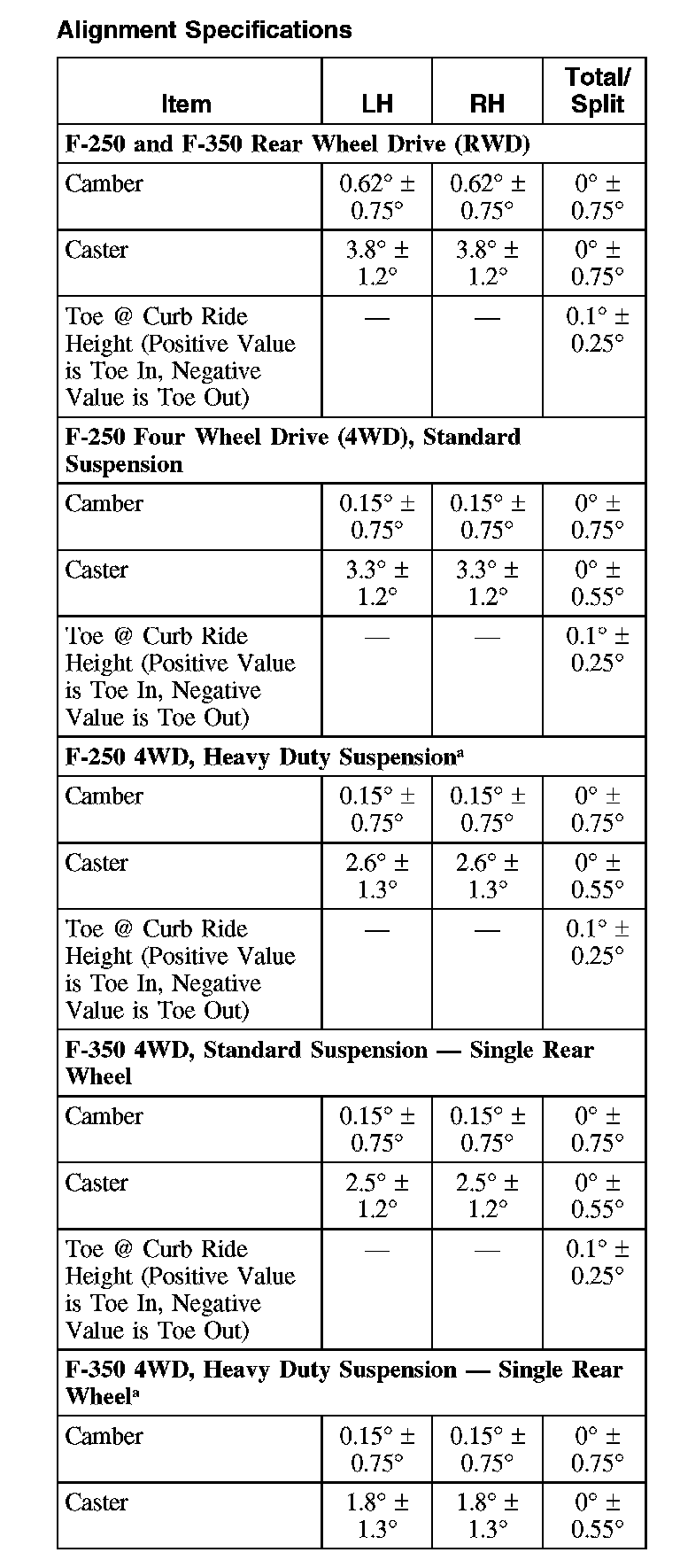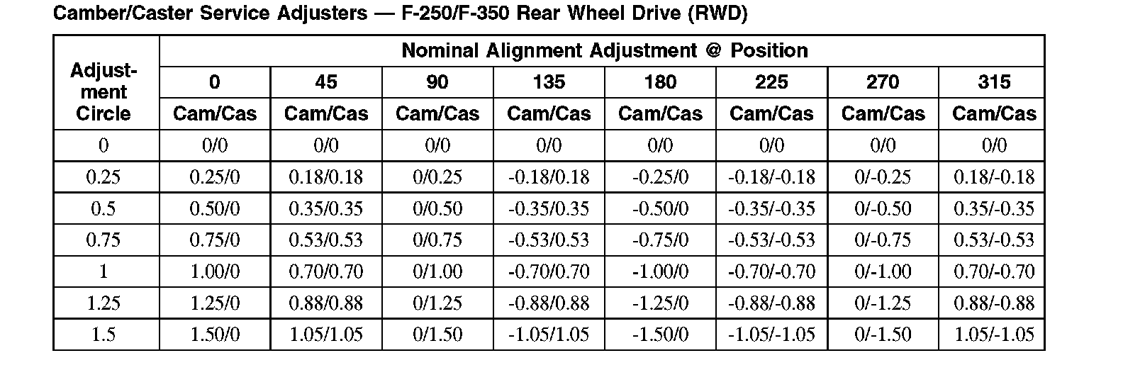 Camber/Caster Service Adjusters - F-250/F-350 Rear Wheel Drive (RWD):