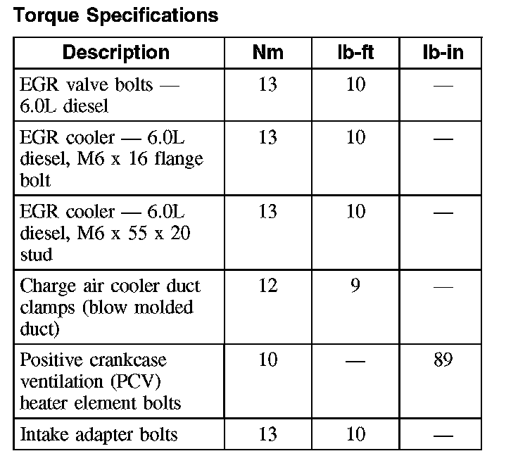 Torque Specifications: