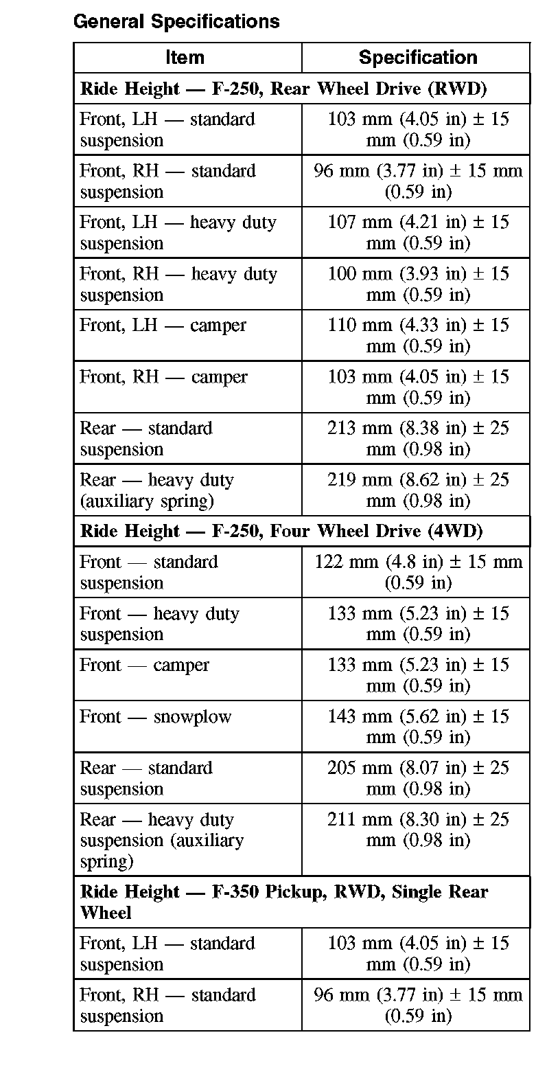 General Specifications:
