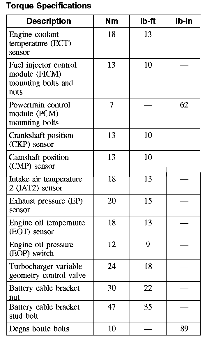Torque Specifications: