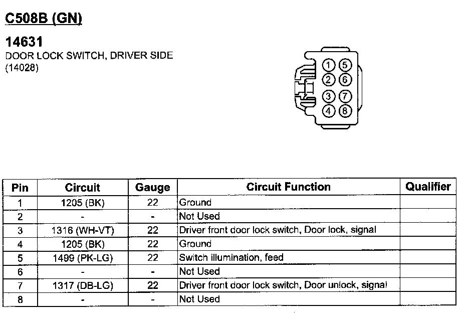 Door Lock Switch, Driver Side