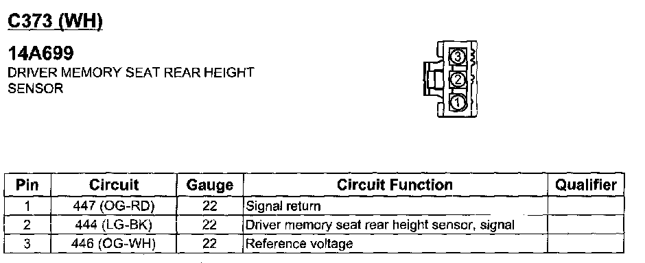 Driver Memory Seat Rear Height Sensor