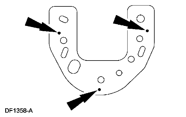 Drill three 3.2 mm (0.12 inch) holes through the alignment plate and shock tower.