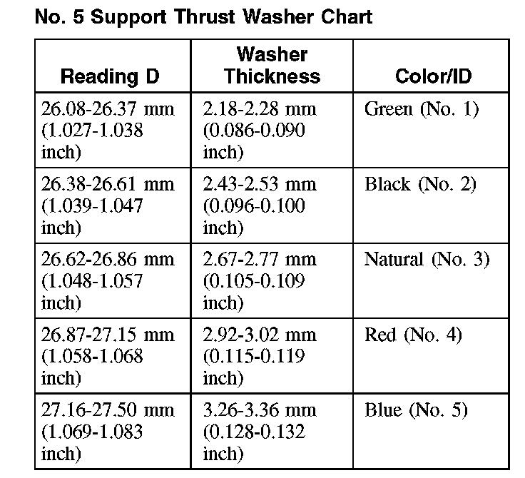 No. 5 Support Thrust Washer Chart: