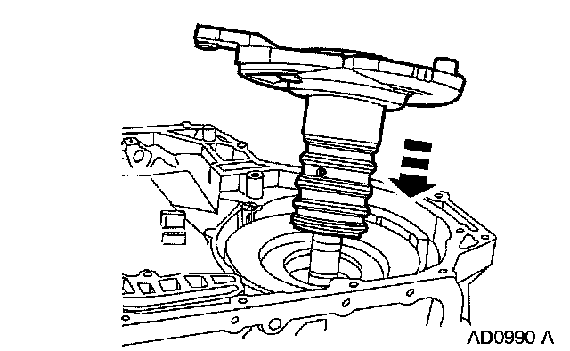 55. CAUTION: The No. 9 direct hub needle bearing may still be inside the transaxle from the No. 8 driven sprocket support thrust washer selection procedure. Use petroleum jelly to hold bearing and washer in place.