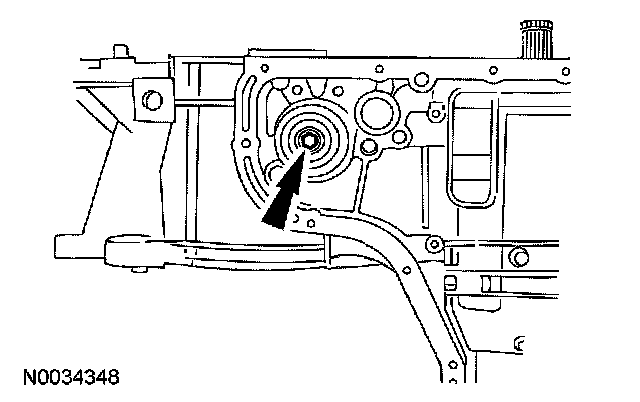 Install the overdrive band anchor strut with the cross hairs facing upward.