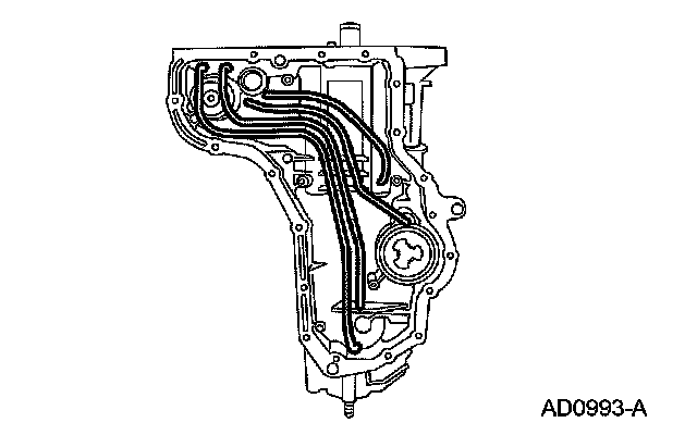 37. Make sure that the reverse clutch cylinder apply tube hole is aligned with the case hole. Remove the tool.