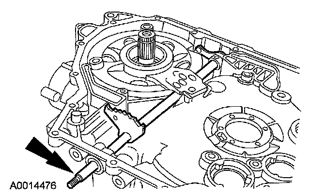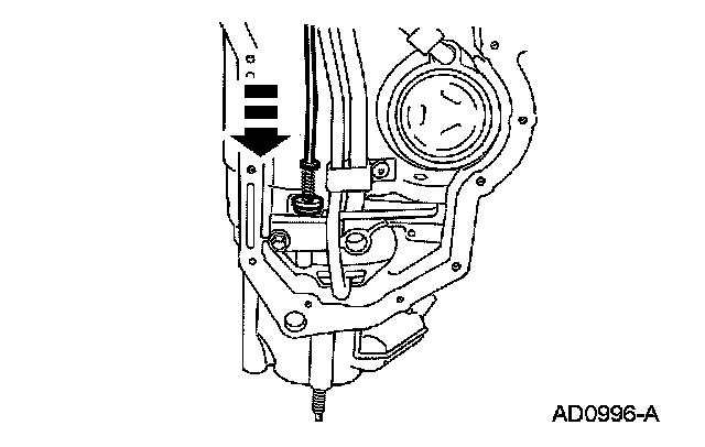 ^ Slide the parking lever actuating rod down to fit in the park pawl.