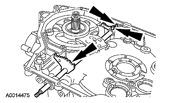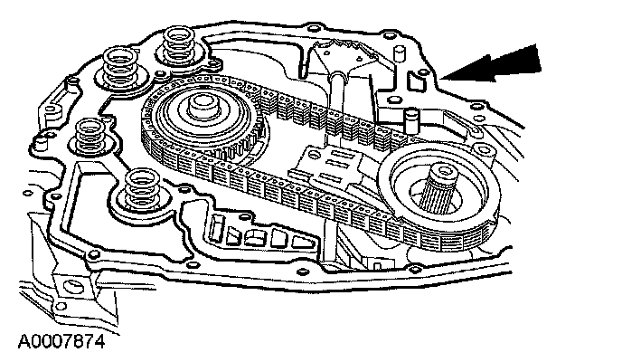 63. NOTE: The manual control valve detent lever must be installed with the shoulder and roll pin hole pointing toward the driven sprocket support.