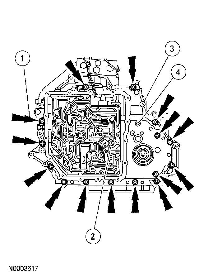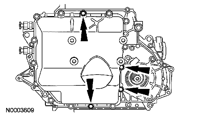 Use the valve body guide pins to install the pump assembly and main control valve body. Install the bolts and tighten in sequence.