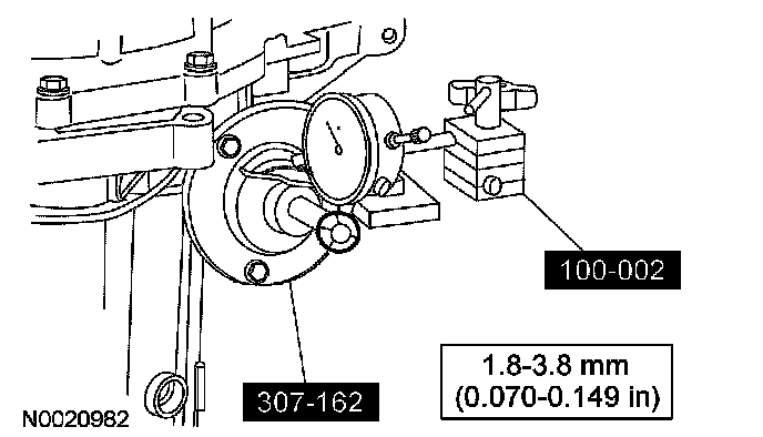 77. Using the special tools, back off the center screw until the piston movement stops and read the dial indicator. The reading should be within specification. If the reading does not match the specification, refer to the overdrive specification chart and determine which overdrive servo rod to use.