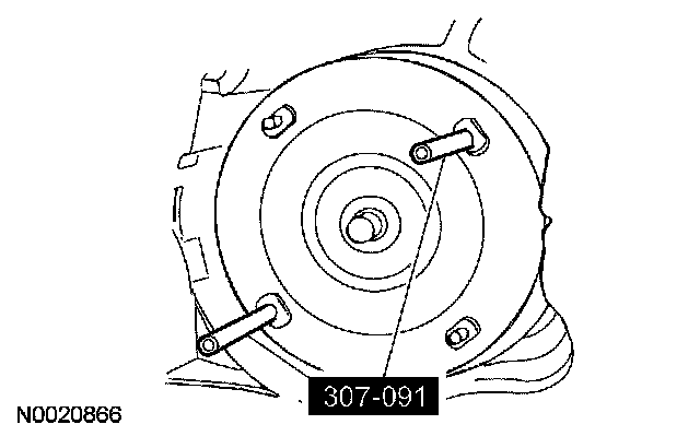 106. NOTE: Locate and align the orange dot adjacent to the stud on the torque converter and place it in the 6 o'clock position.