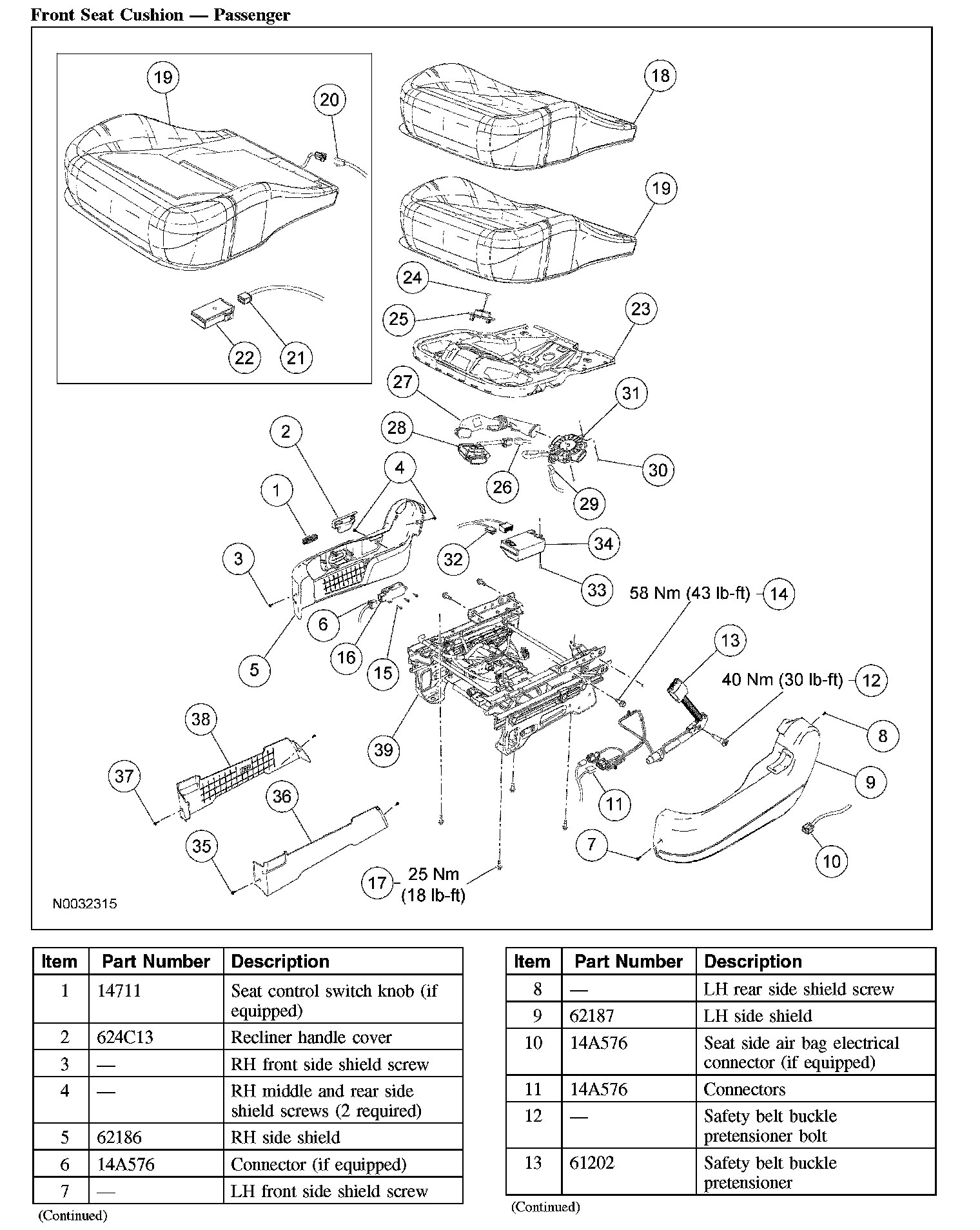 - The heater mat on the front passenger seat cushion is not serviceable separately. If a new heater mat is needed on the front passenger seat cushion a new occupant classification sensor (OCS) service kit, equipped with a heater mat, must be installed.