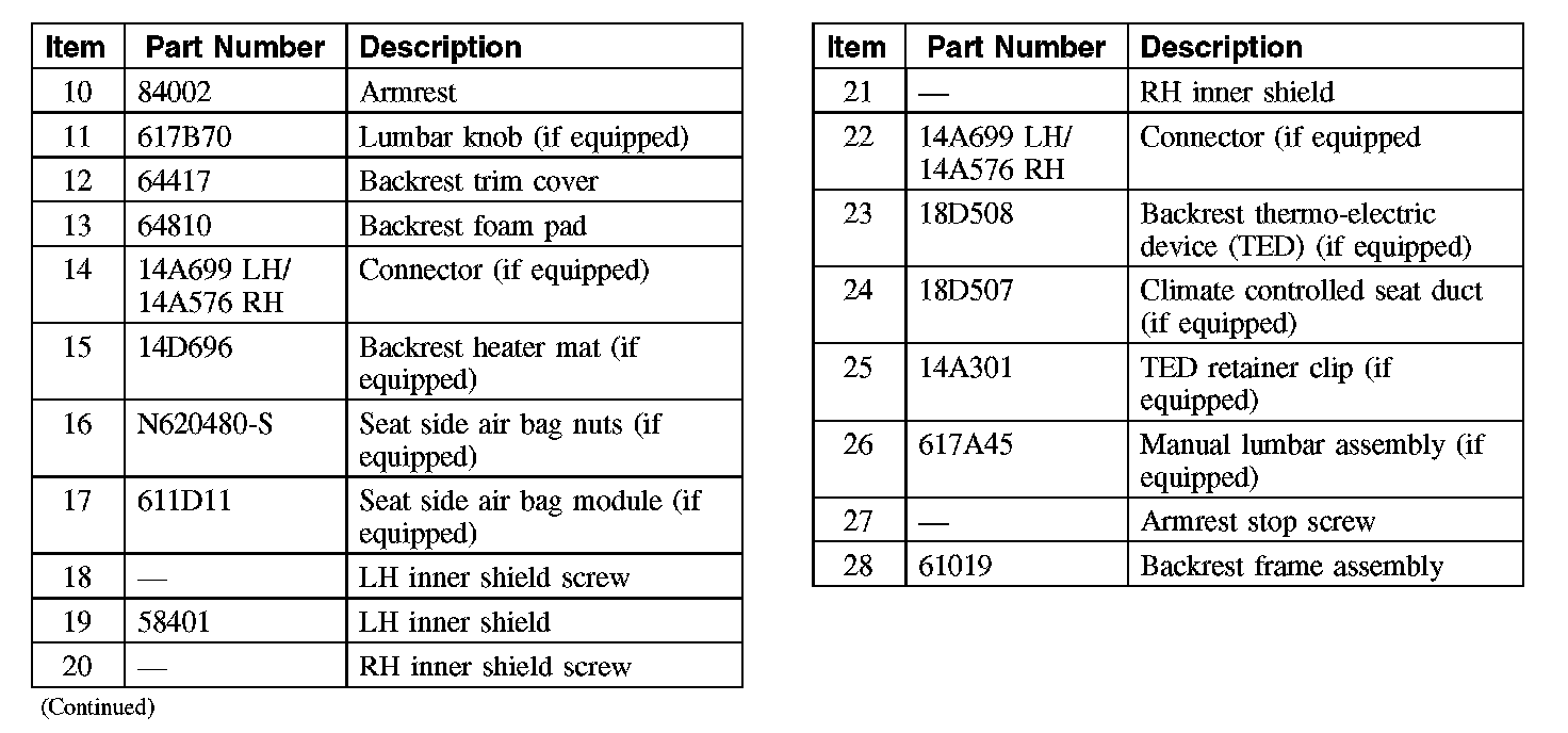 - If a seat equipped with a supplemental restraint system (SRS) component is being serviced, the SRS must be depowered.