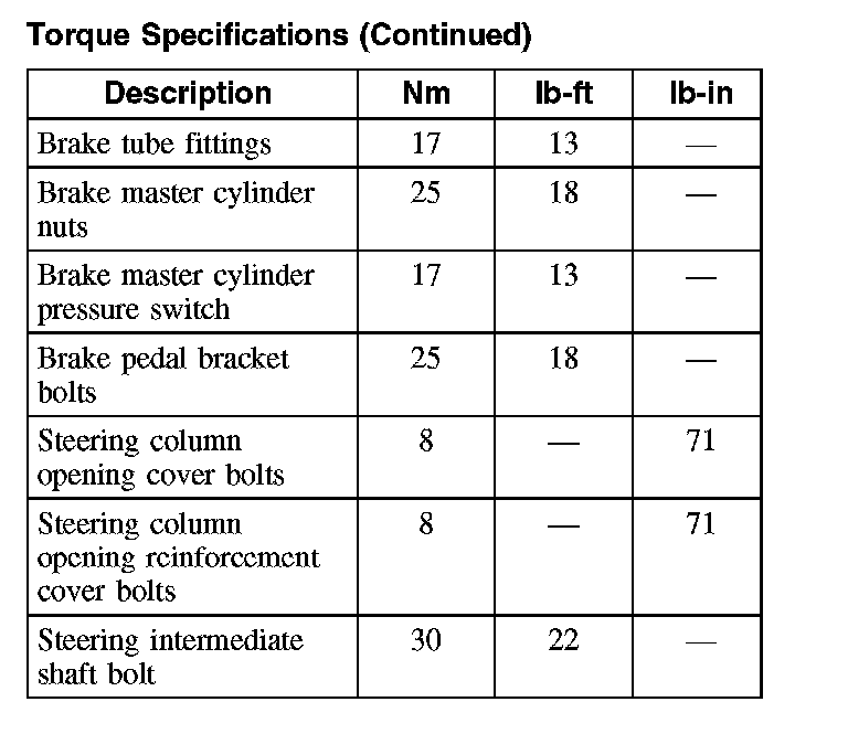 Torque Specifications (Part 1):