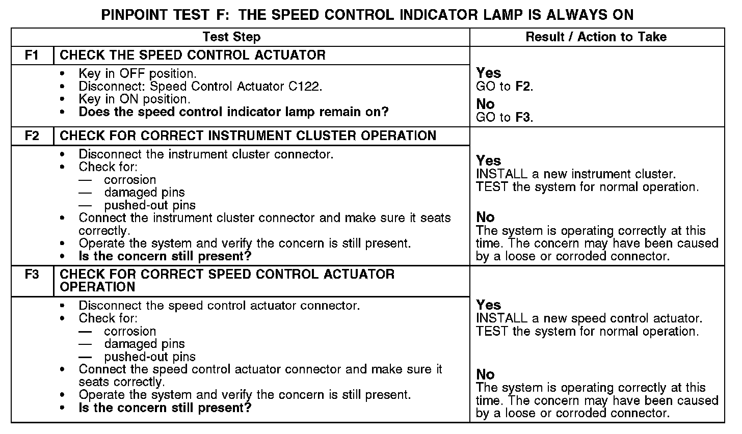 PINPOINT TEST F: THE SPEED CONTROL INDICATOR LAMP IS ALWAYS ONF1-F3: