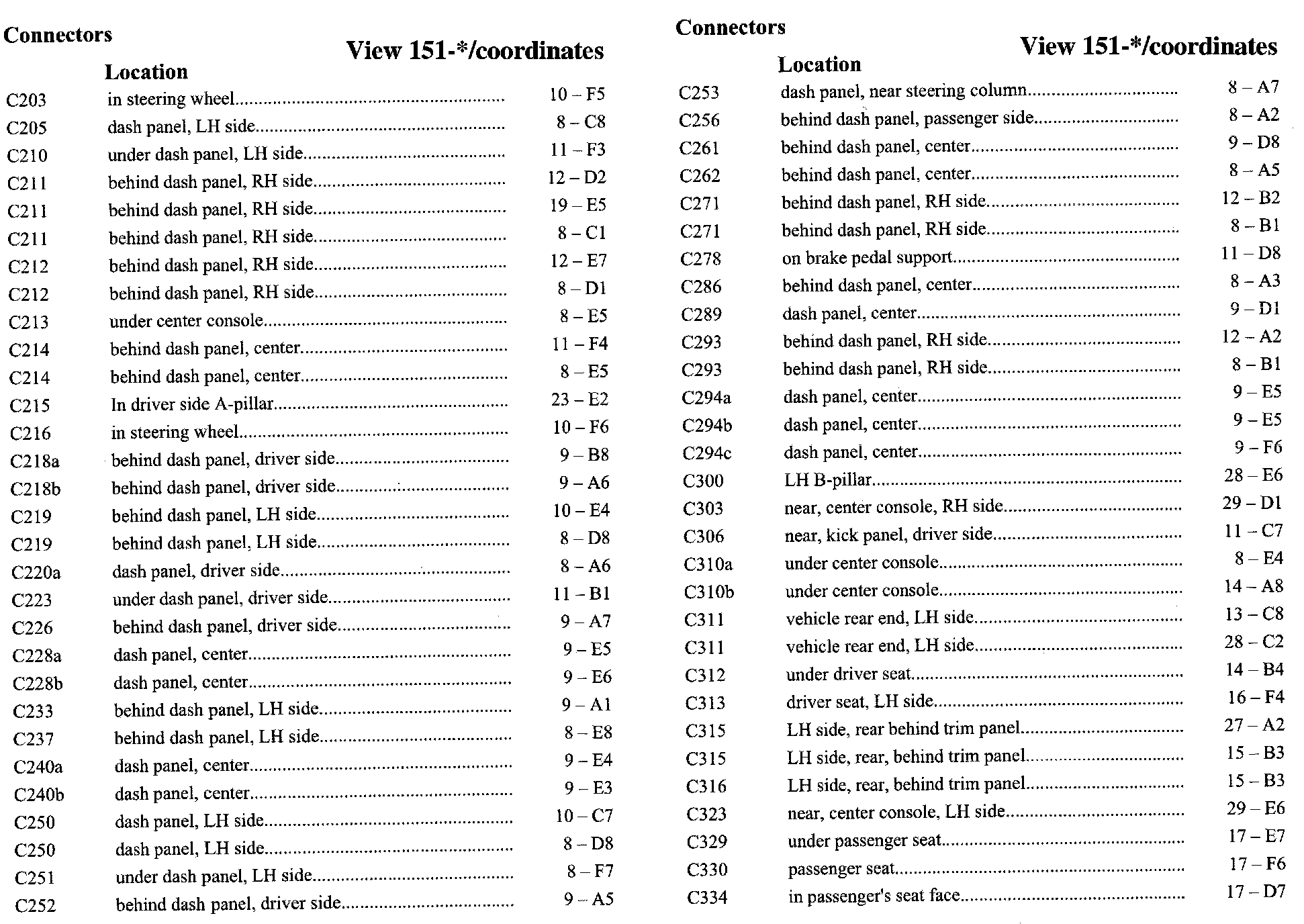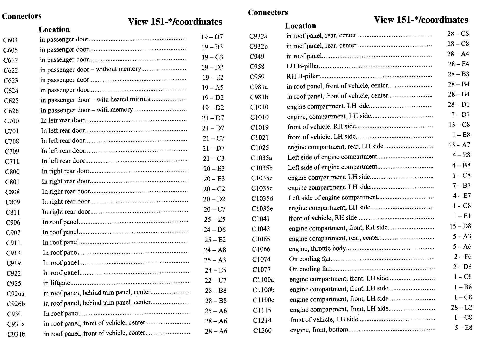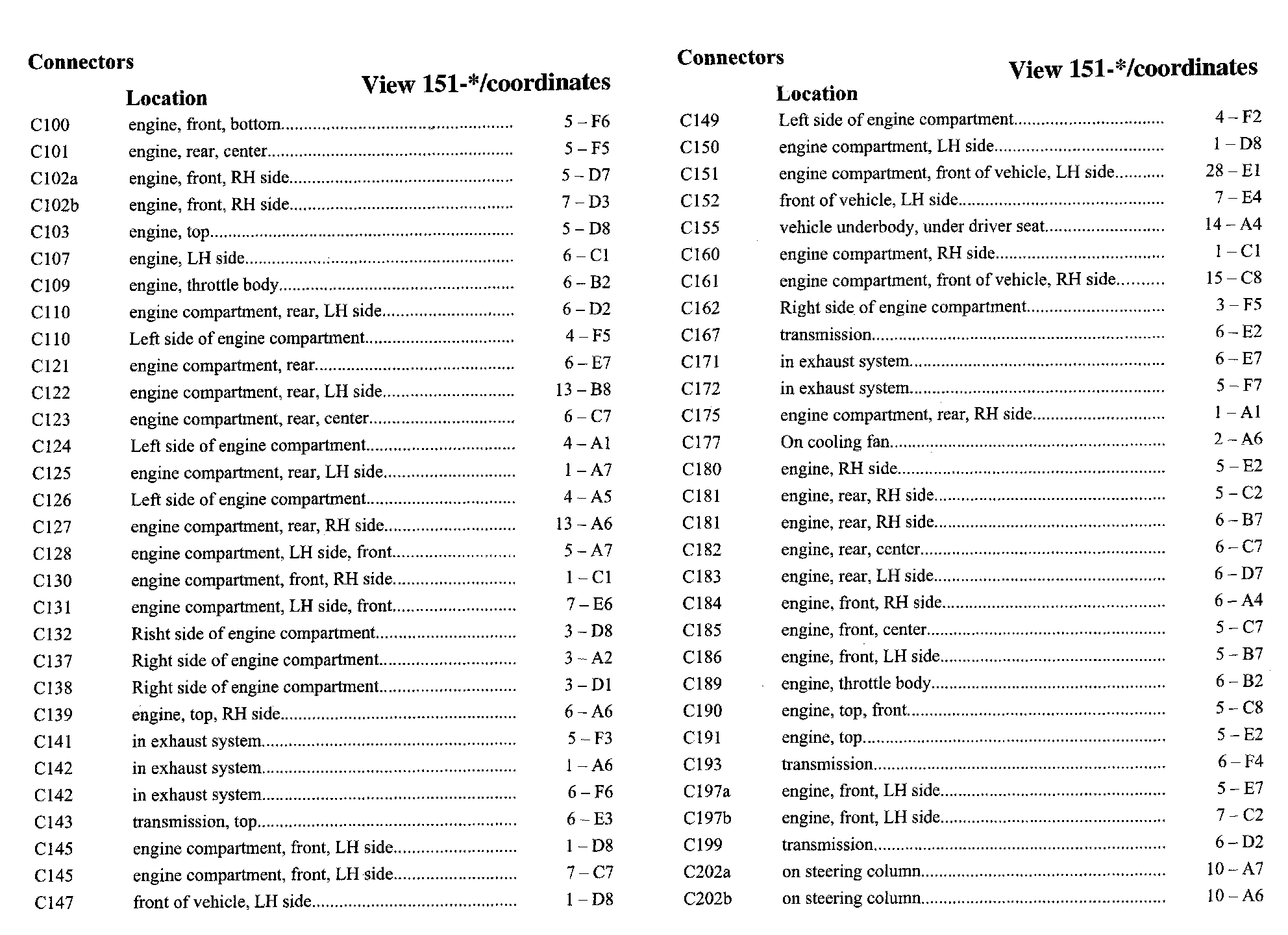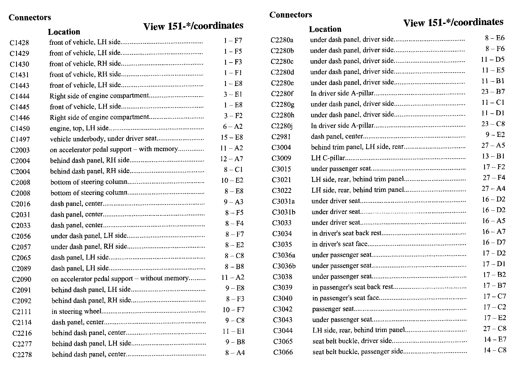 PLEASE NOTE: If a link on the Connector Location Index to a View is not provided, that means that the Connector and/or View in question does NOT apply to the vehicle model selected.