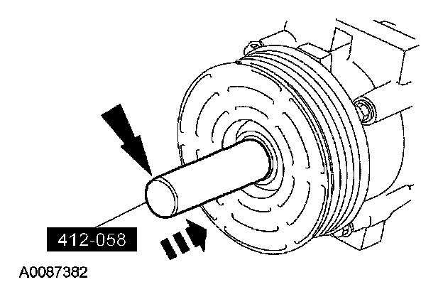4. Push the shaft seal onto the A/C compressor shaft with the special tool until seated.