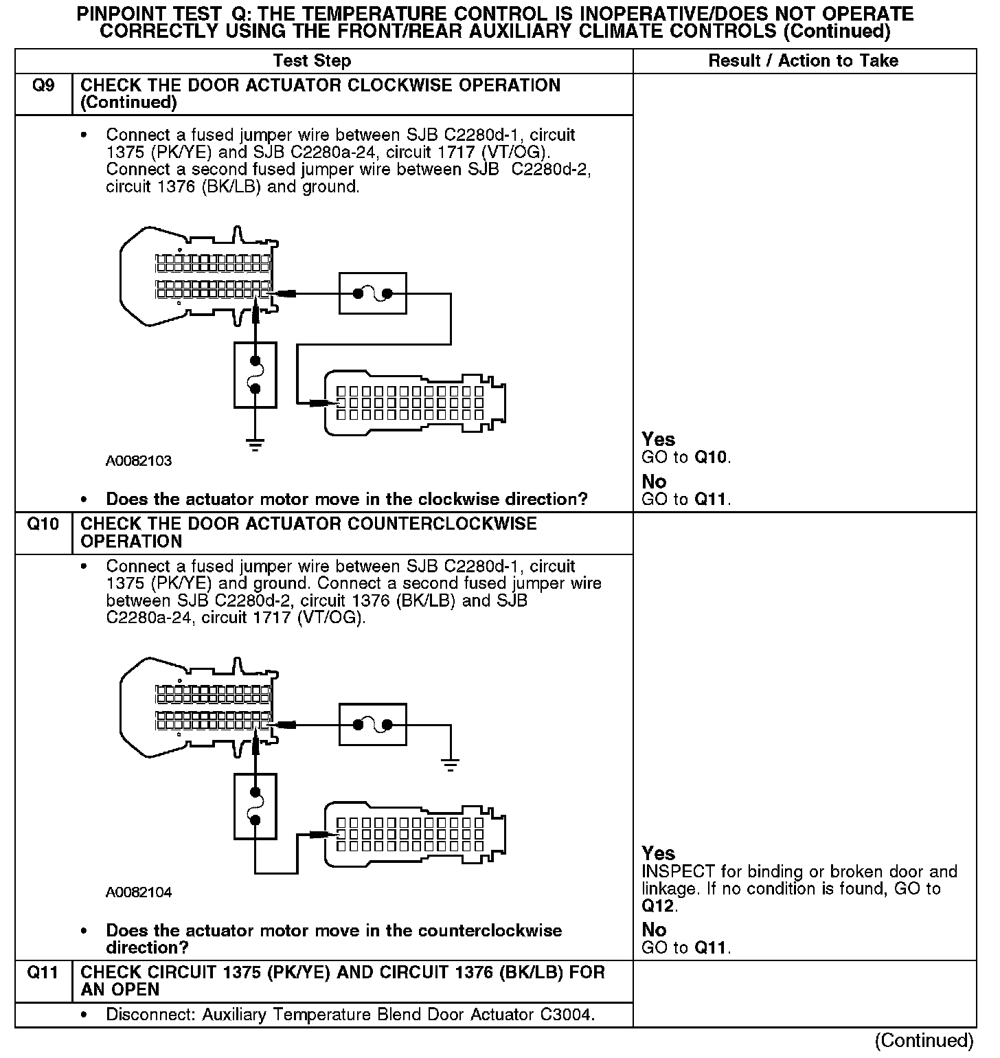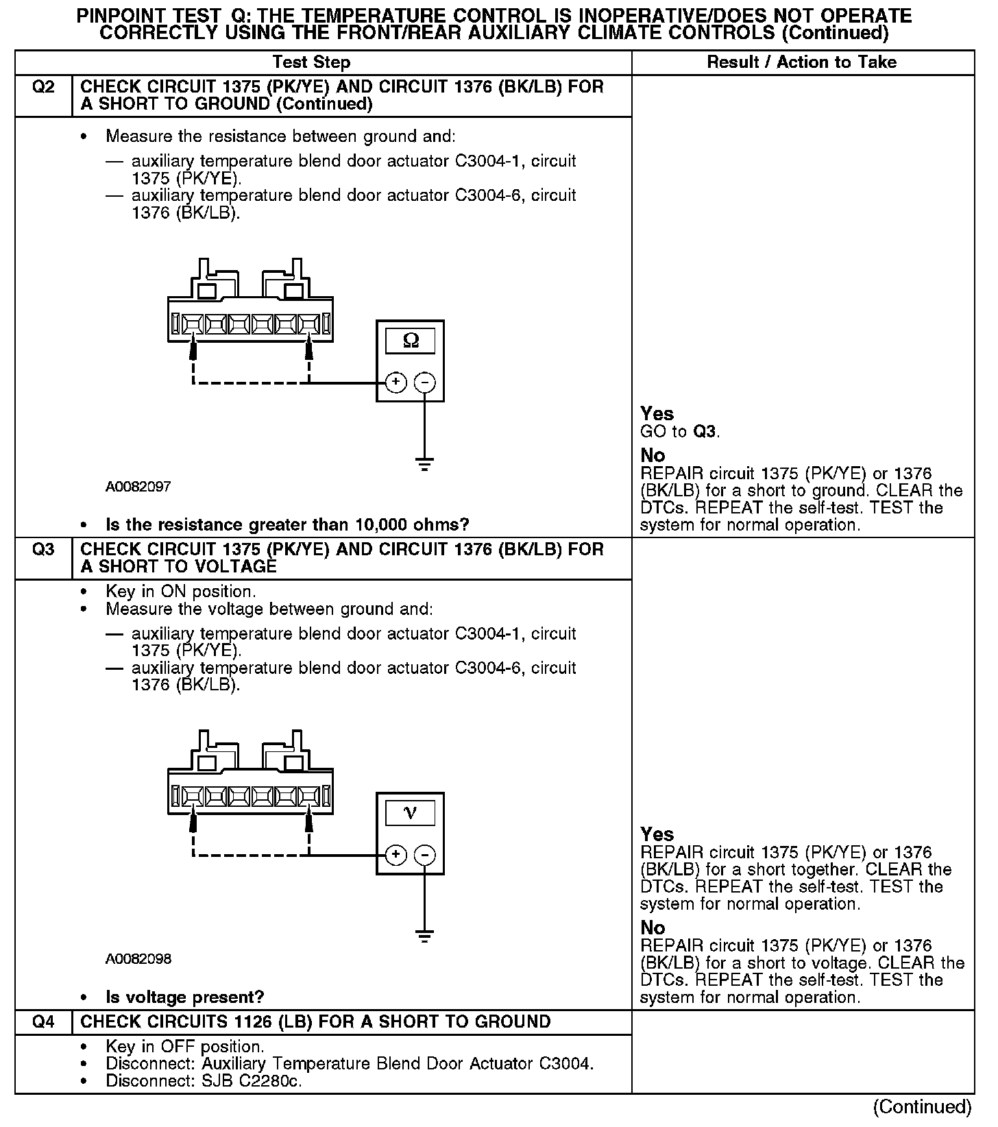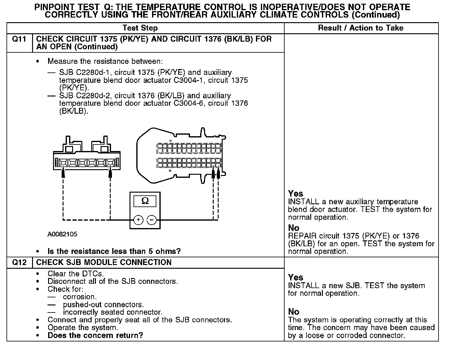 PINPOINT TEST Q: THE TEMPERATURE CONTROL IS INOPERATIVE/DOES NOT OPERATE CORRECTLY USING THE FRONT/REAR AUXILIARY CLIMATE CONTROLSQ1-Q2: