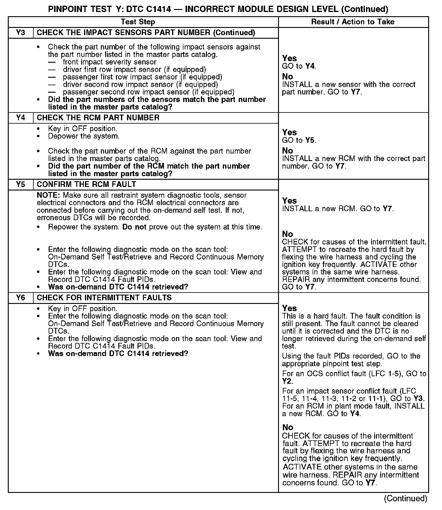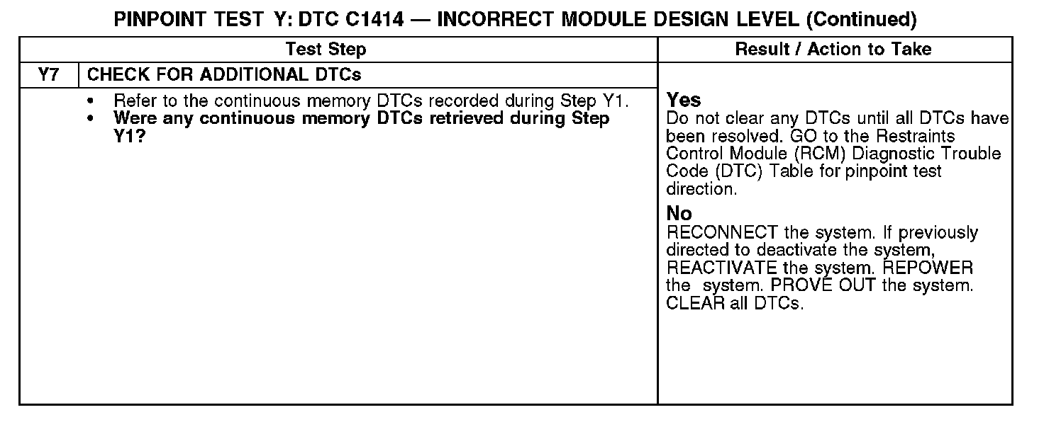 PINPOINT TEST Y: DTC C1414 - INCORRECT MODULE DESIGN LEVELY1-Y3: