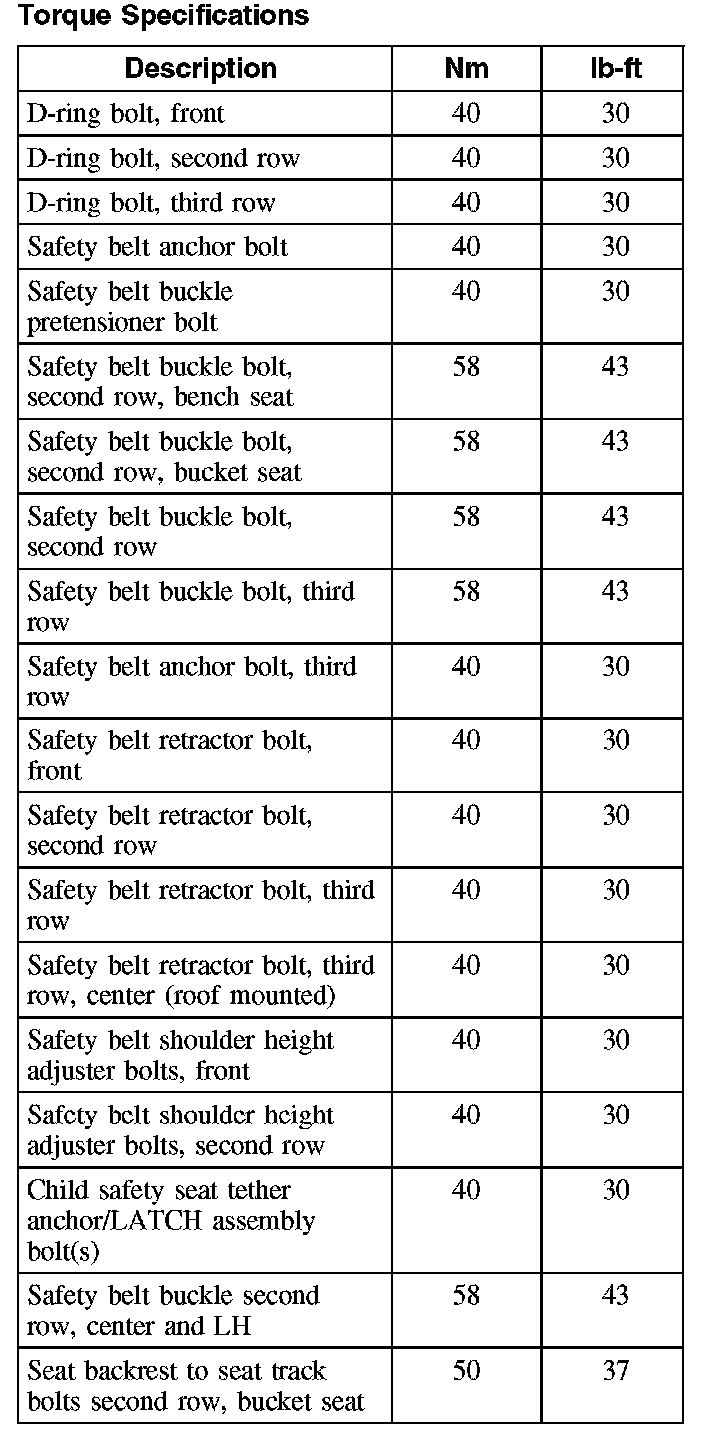 Seat Belt Systems: Specifications