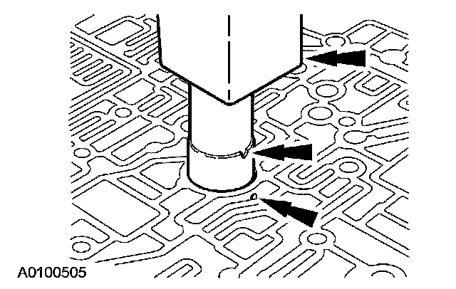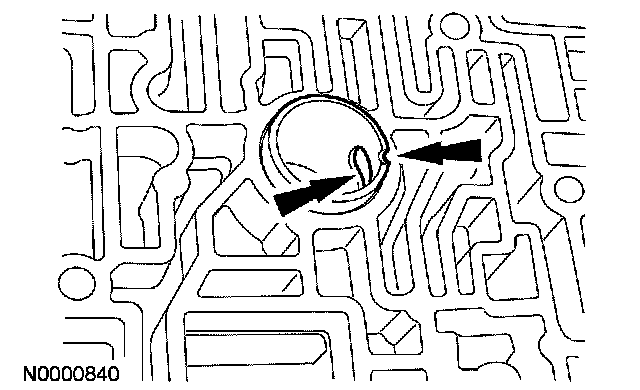 ^ Verify that the hole in the valve body sleeve aligns with the hole in the circuit passage.