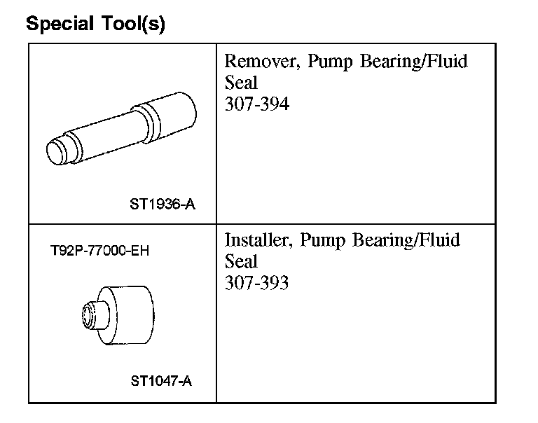 2. If removed, use the special tool and a suitable press, install the fluid pump body bearing.