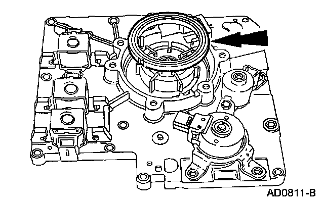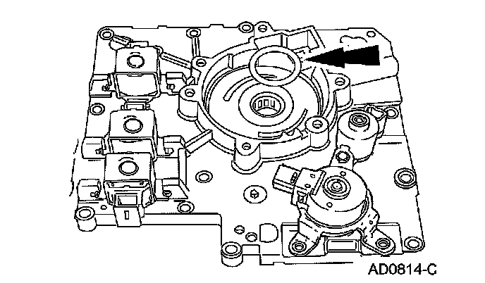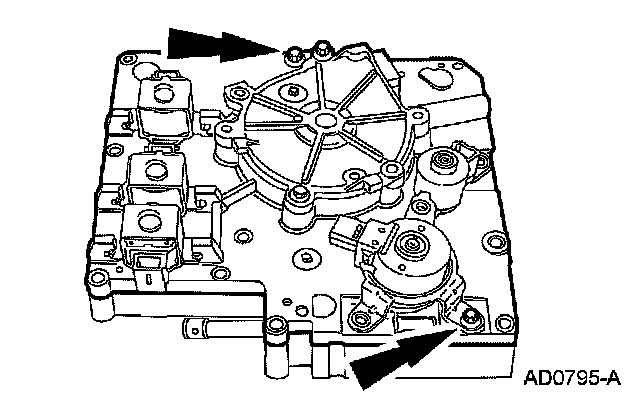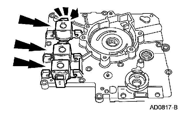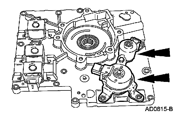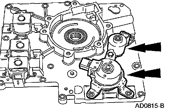 15. NOTE: The shift solenoids are interchangeable. Take note of the shift solenoid connector orientation.