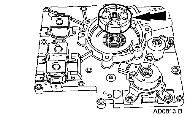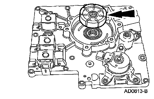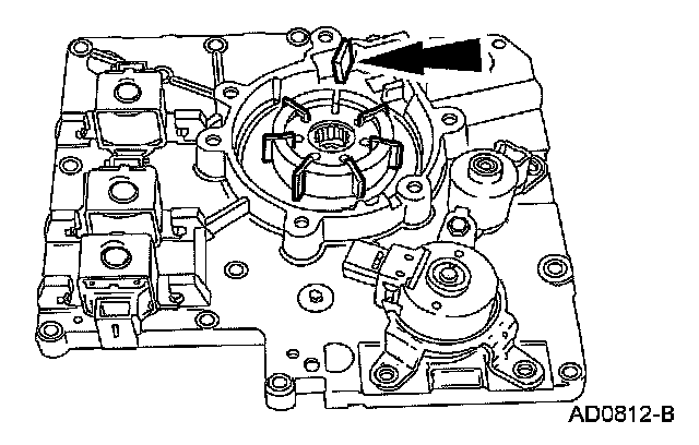 Remove the shift solenoids by pressing locking tab with a screwdriver and rotating them.
