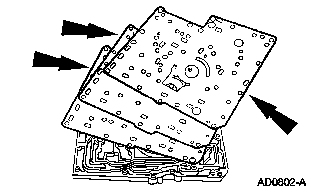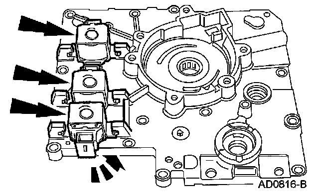 Install new O-ring seals and install the shift solenoids by pressing down and rotating them until they lock in place.