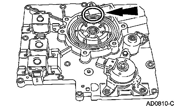 13. CAUTION: Be sure the pump bore area is well cleaned. It is a hidden foreign material trap. Flow from the pump goes into the manual valve circuit, then passes into the EPC circuit. Pump pressure at this point is very high. Any foreign material not cleaned out here will be pumped through the transaxle on the first operation.