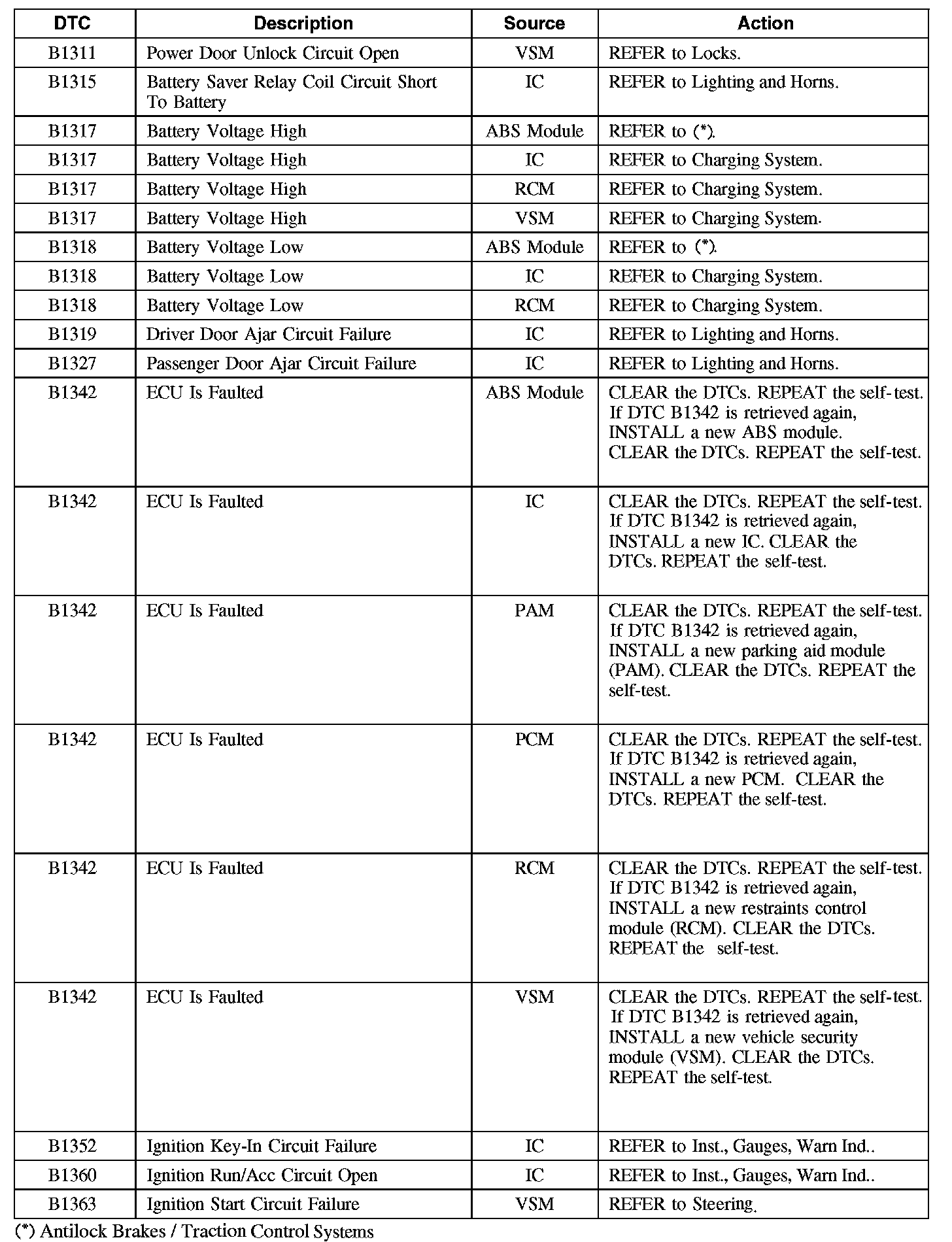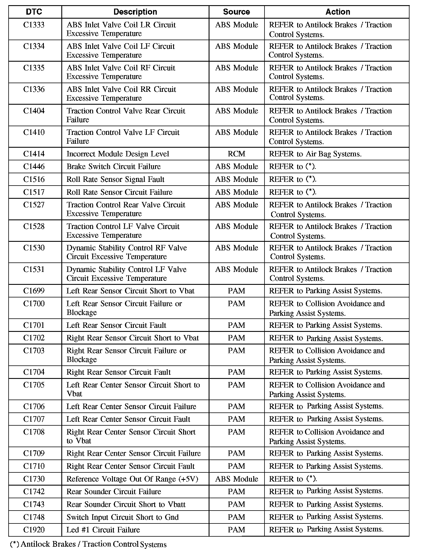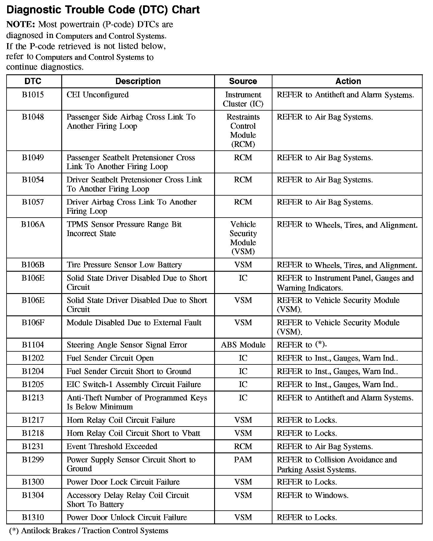Diagnostic Trouble Code (DTC) Chart