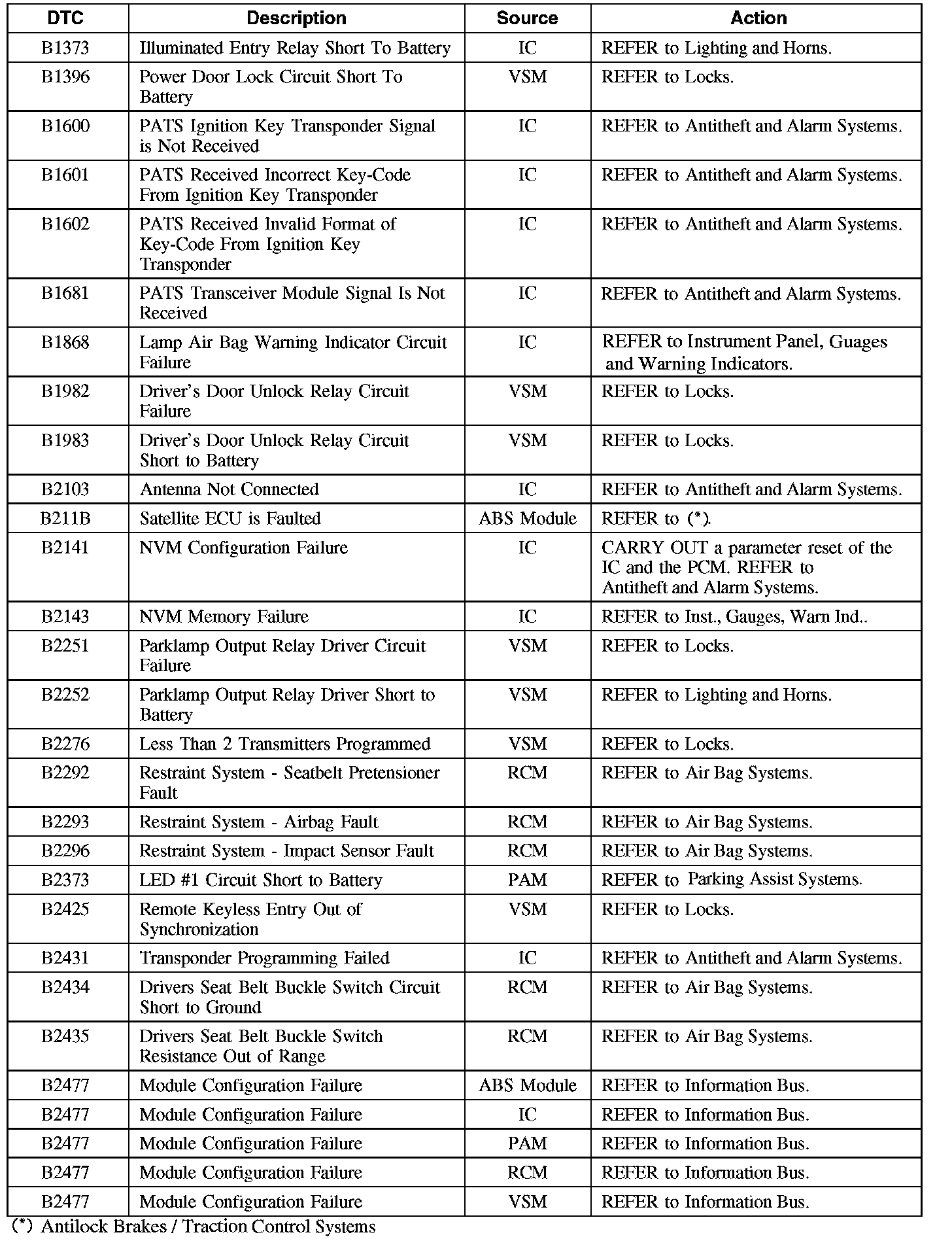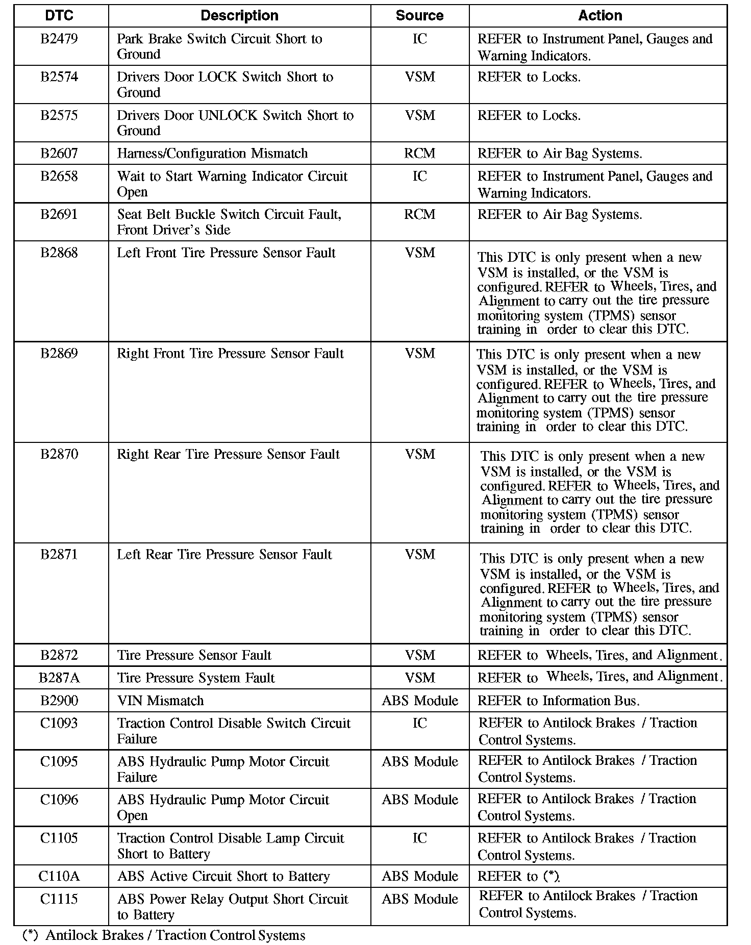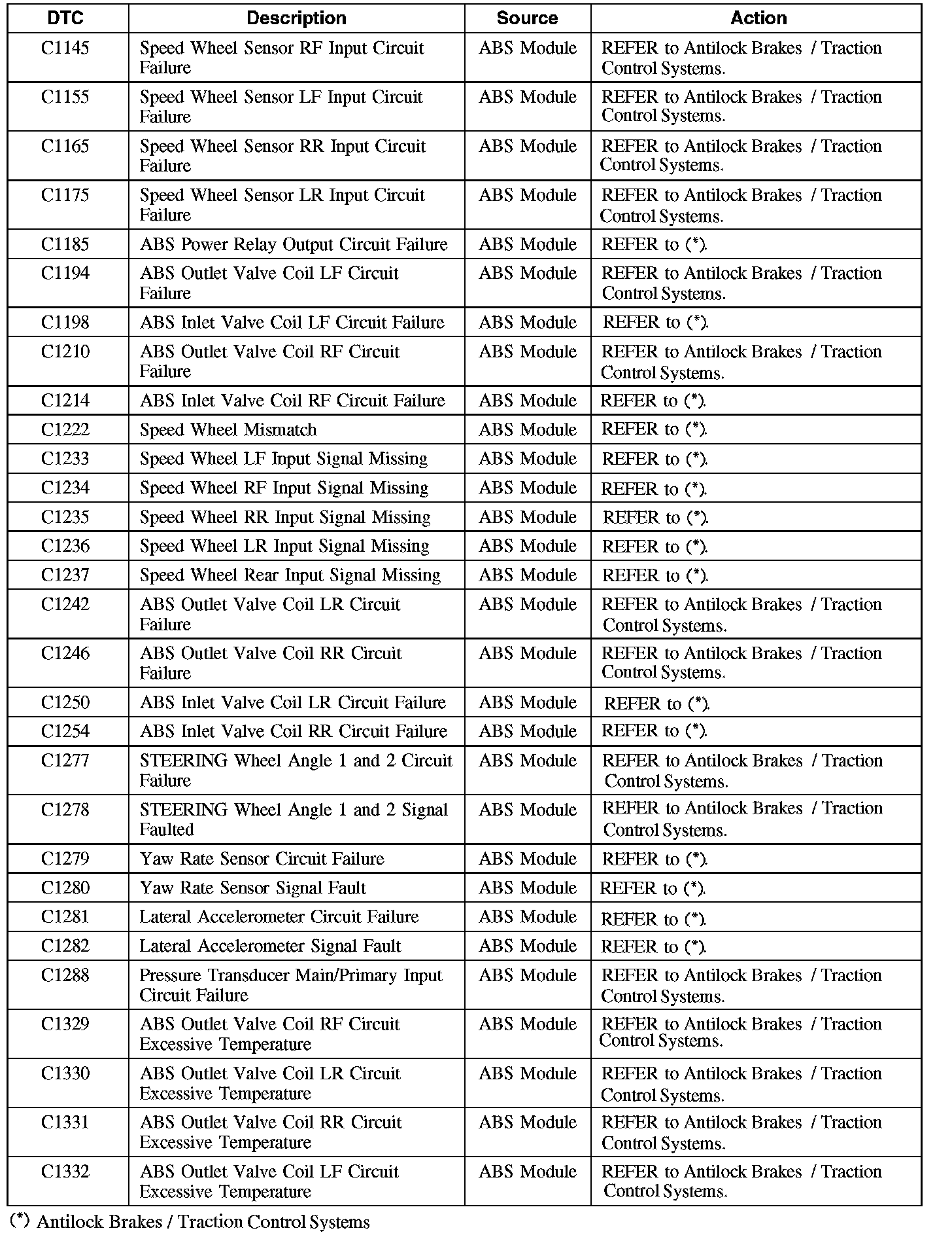 Diagnostic Trouble Code (DTC) Chart