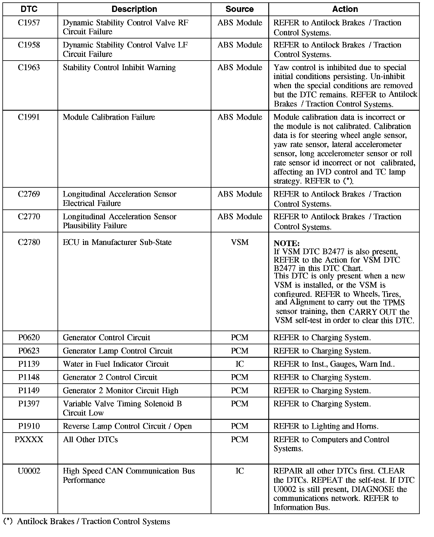 C1957-C2780 / P0620-P1910 / U0002: