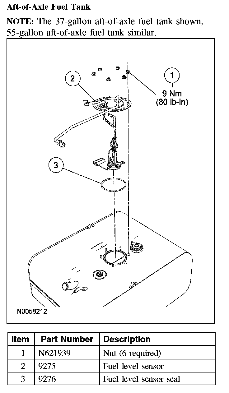 FUEL LEVEL SENSORAft-of-Axle Fuel Tank: