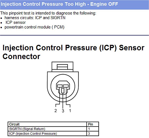 PINPOINT TEST AP: INJECTION CONTROL PRESSURE TOO HIGH - ENGINE OFF