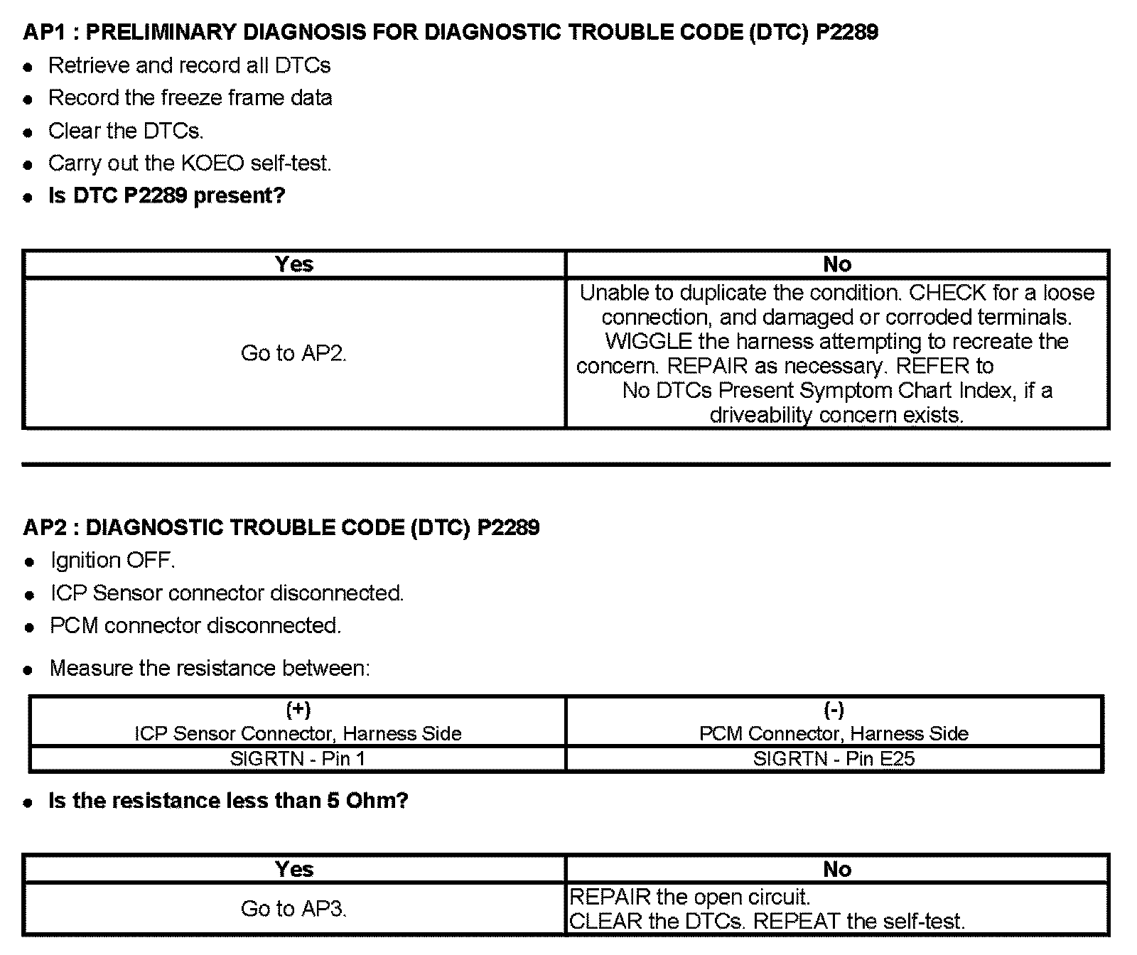 Tests AP: Injection Control Pressure Too High - Engine Off