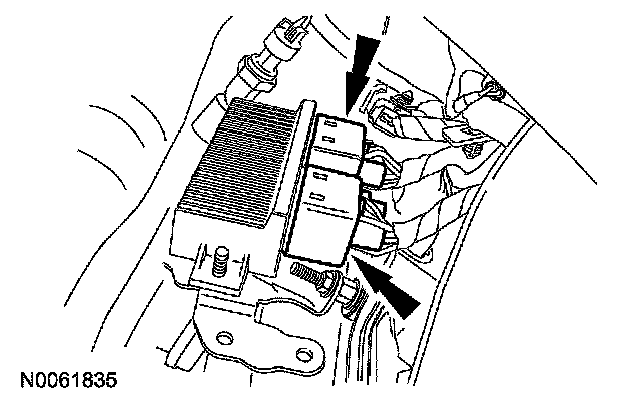 4. Position the glow plug module and disconnect the glow plug module electrical connectors. Remove the glow plug module.