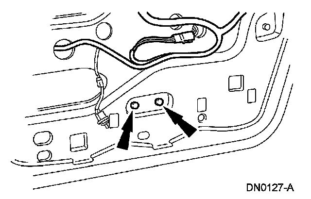 4. NOTE: Avoid enlarging the sheet metal holes in the door inner panel.