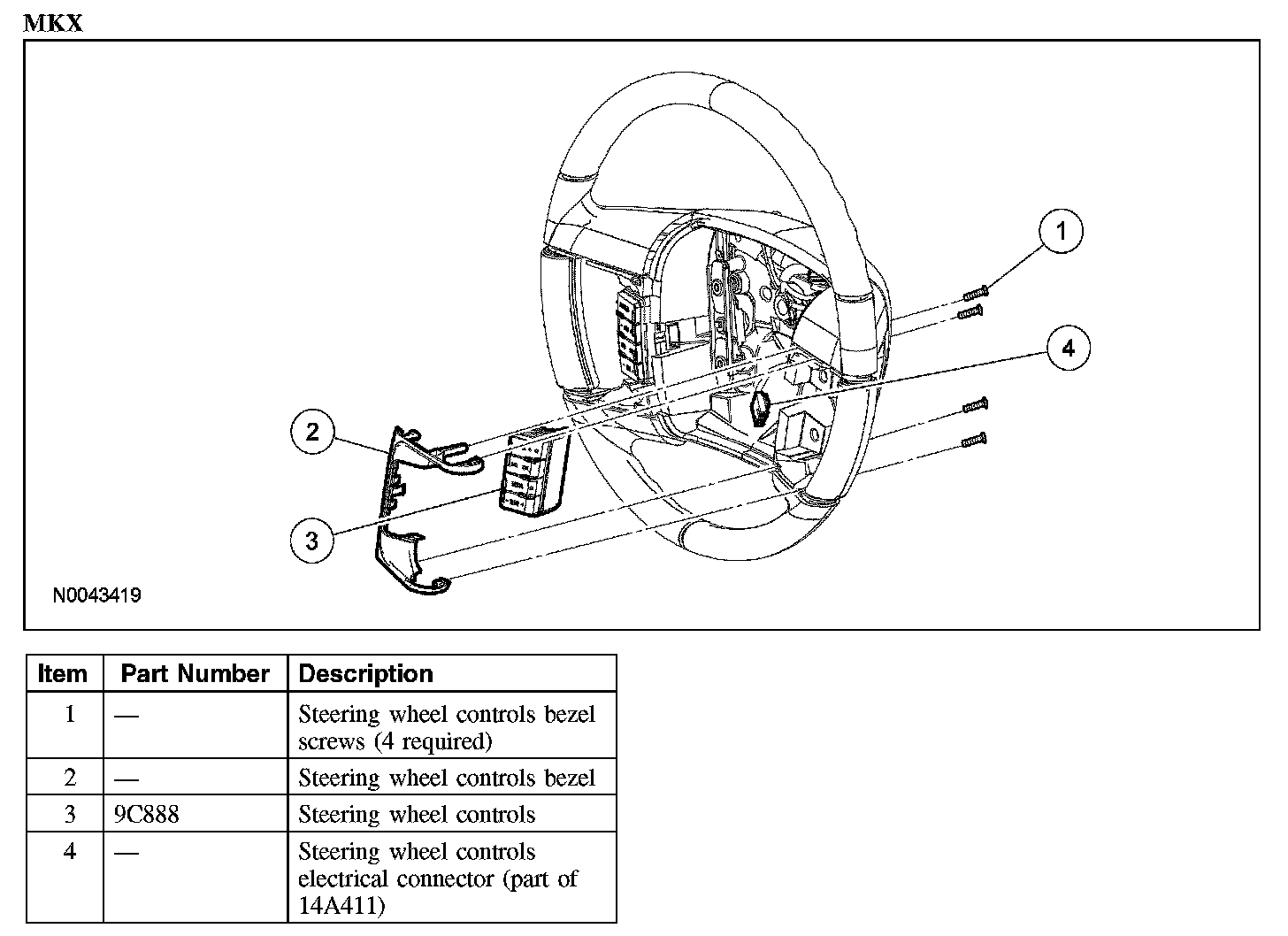 2. Remove the 4 screws and the steering wheel controls bezel.