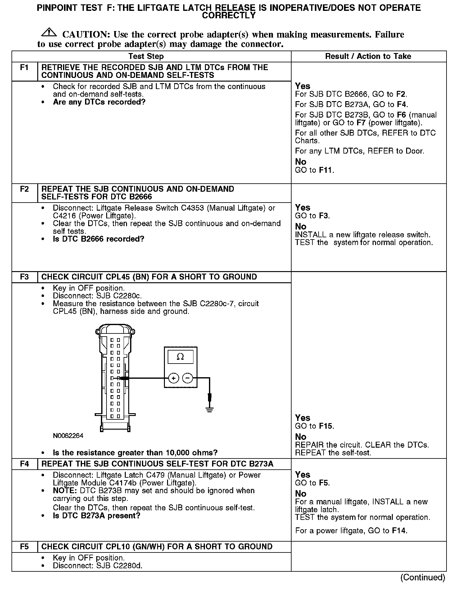 - DTC B273A (Liftgate Release Output Circuit Shorted to Ground) - is a continuous DTC that sets when the SJB detects a short to ground on the liftgate latch release output circuit CPL10 (GN/WH).