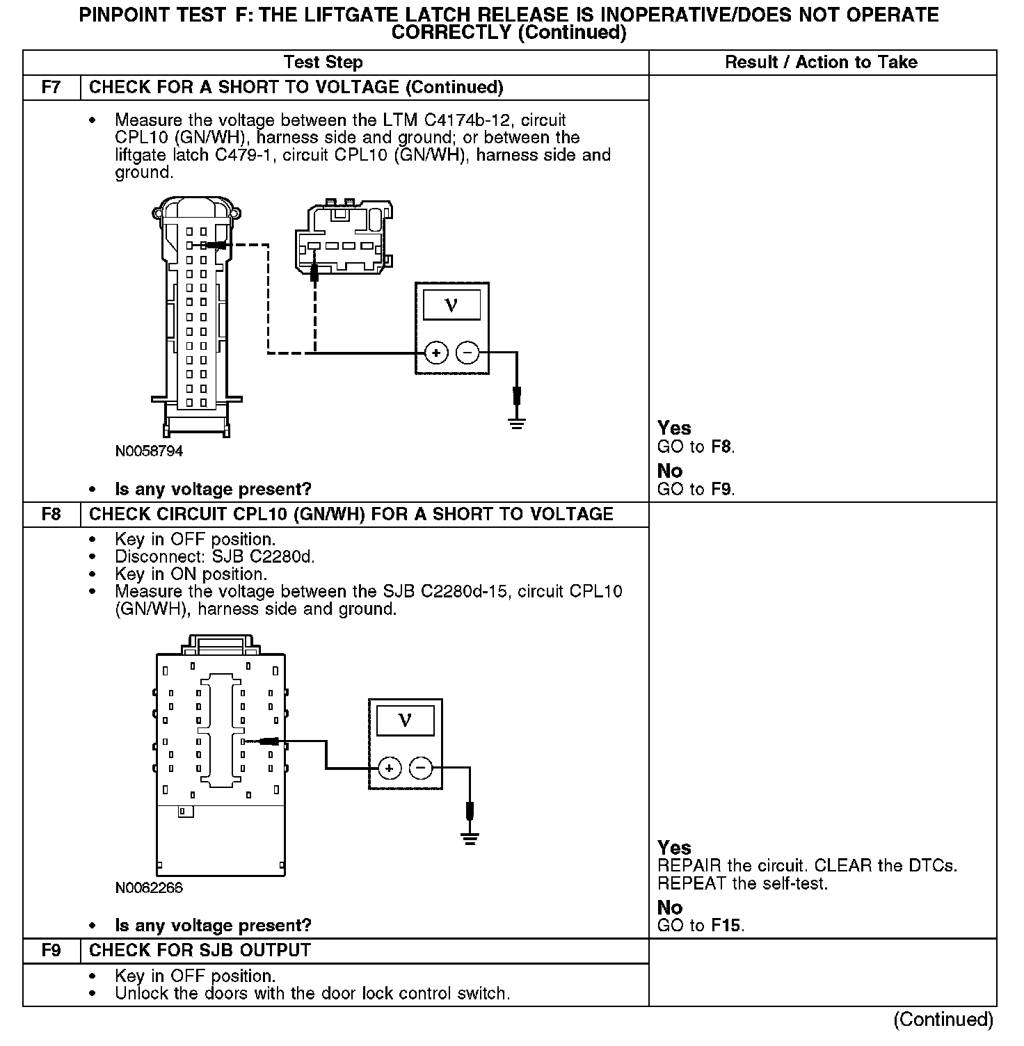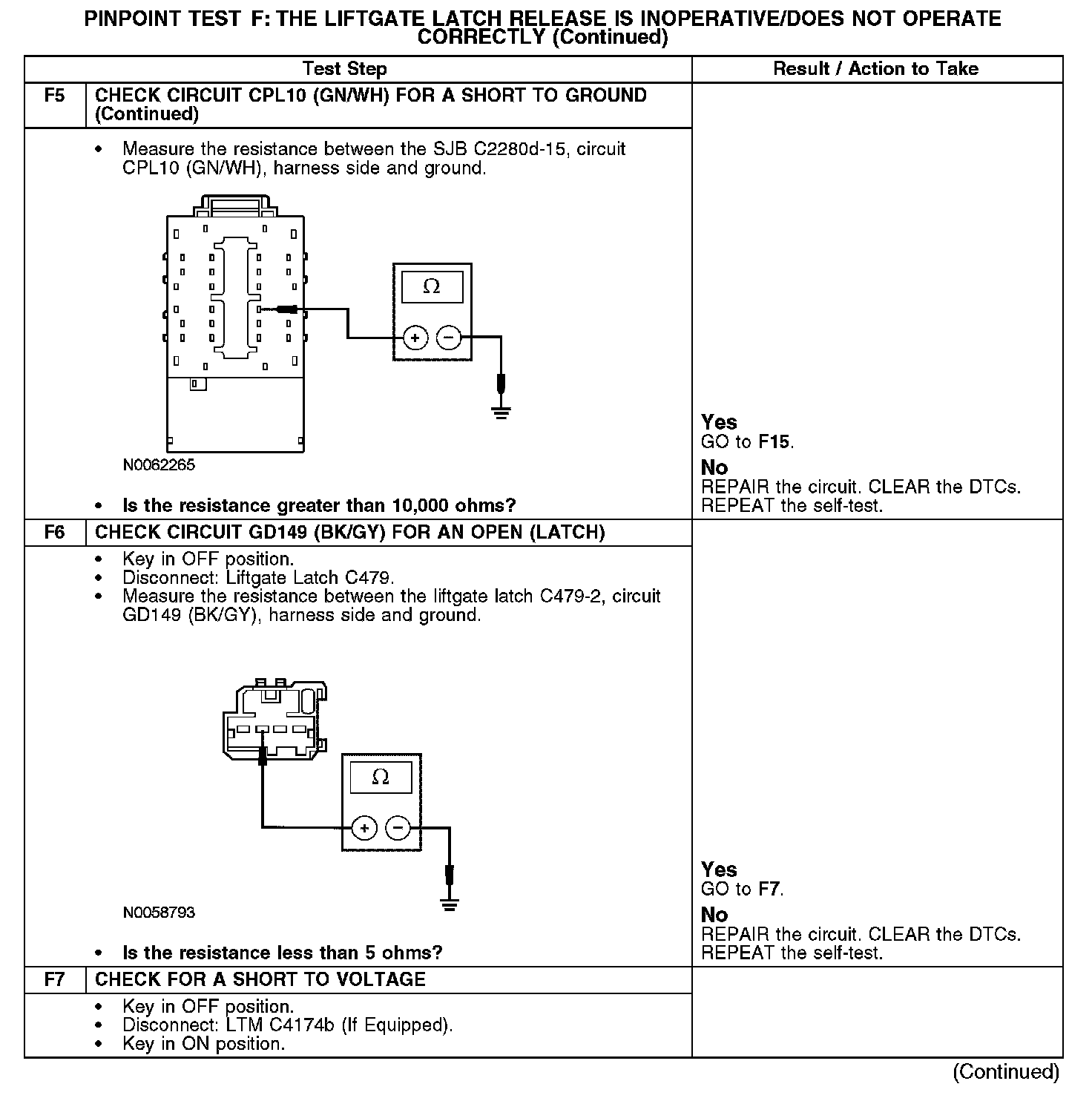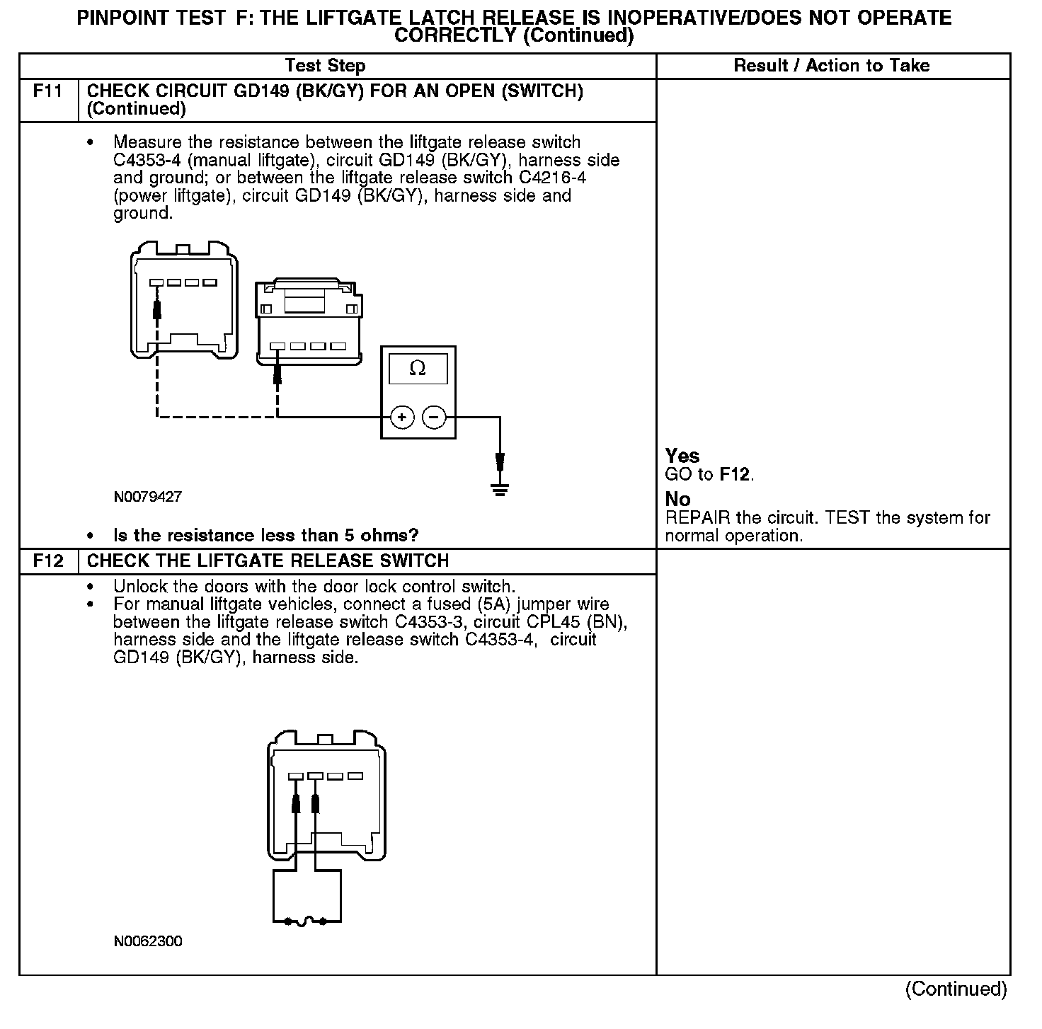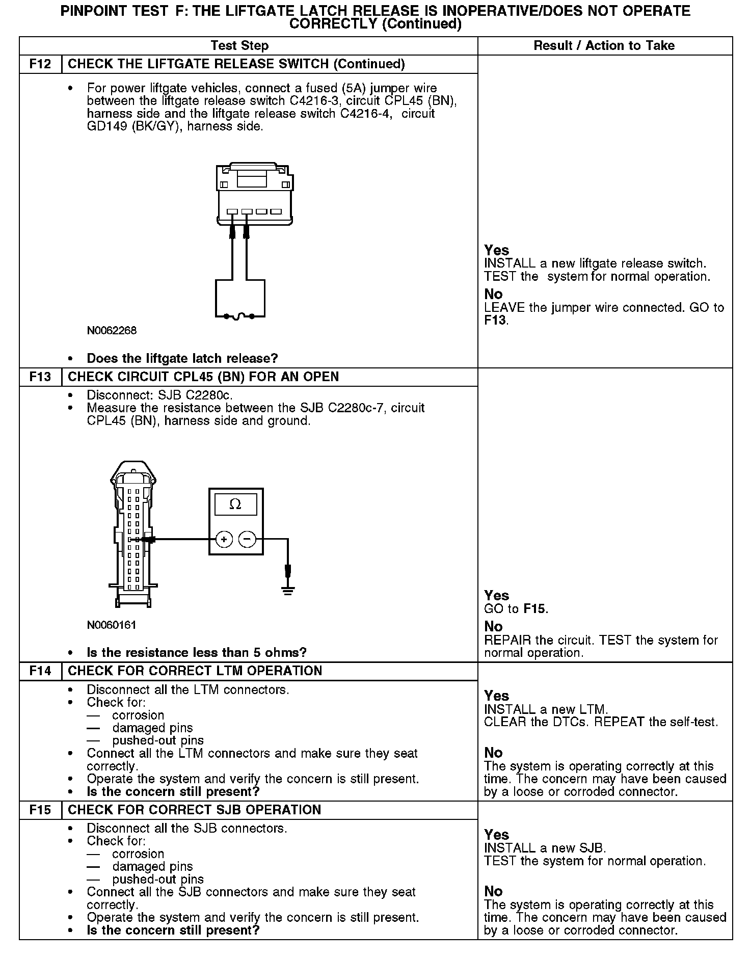 PINPOINT TEST F: THE LIFTGATE LATCH RELEASE IS INOPERATIVE/DOES NOT OPERATE CORRECTLYNormal Operation