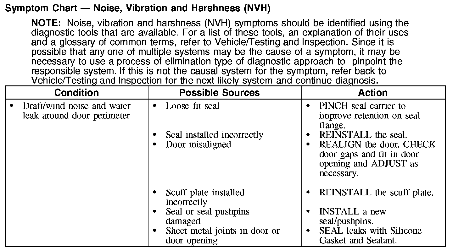 Symptom Chart - Noise, Vibration and Harshness (NVH) (Part 1):