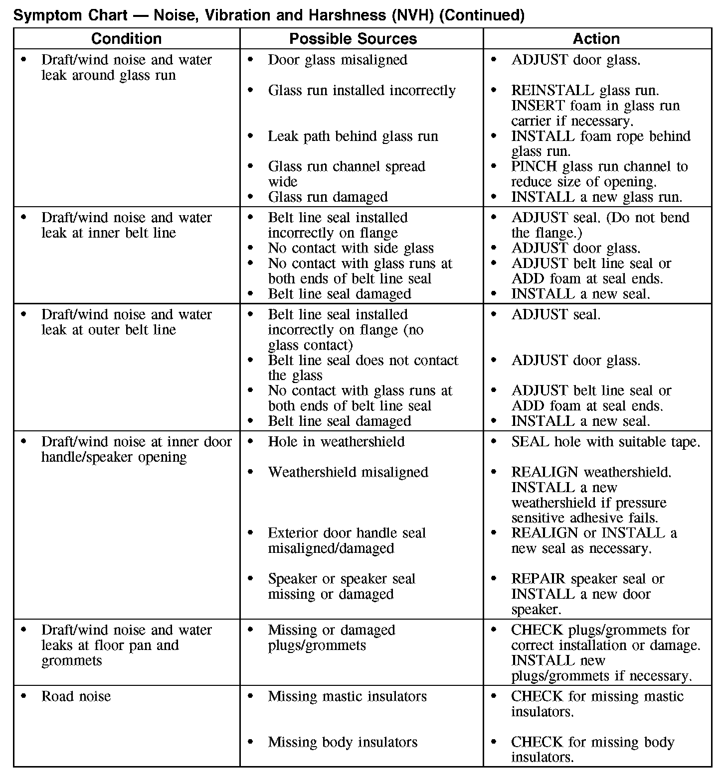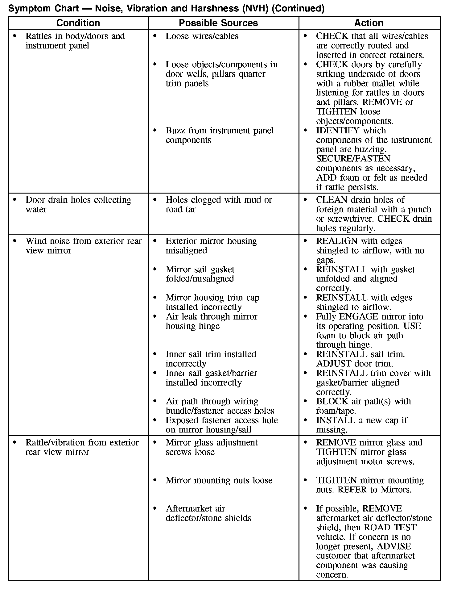 Symptom Chart - Noise, Vibration and Harshness (NVH) (Part 2):