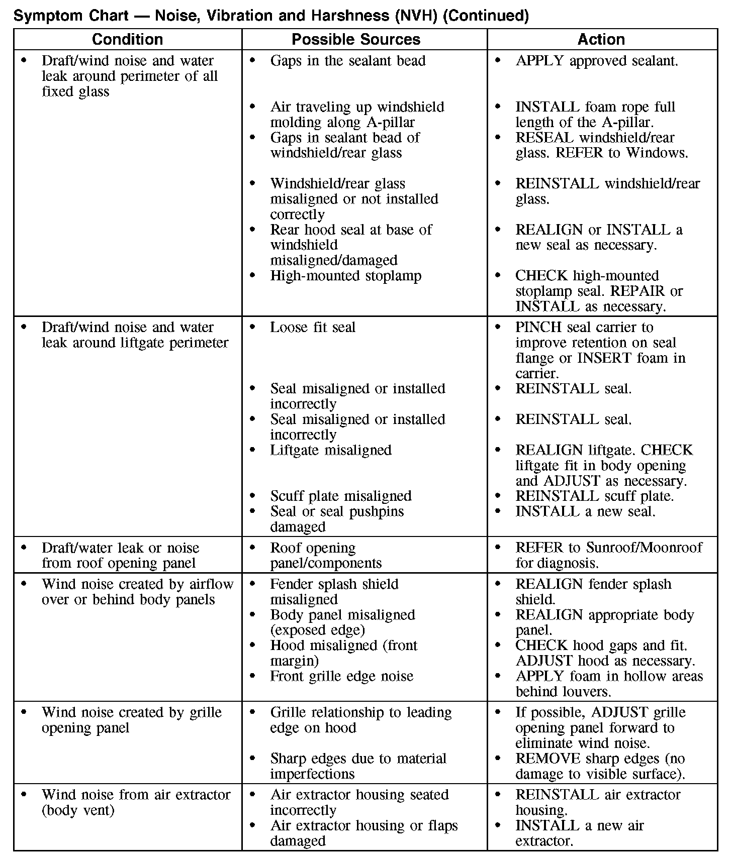 Symptom Chart - Noise, Vibration and Harshness (NVH) (Part 4):