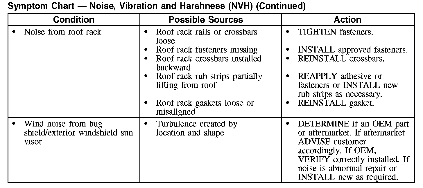 Symptom Chart - Noise, Vibration and Harshness (NVH) (Part 3):