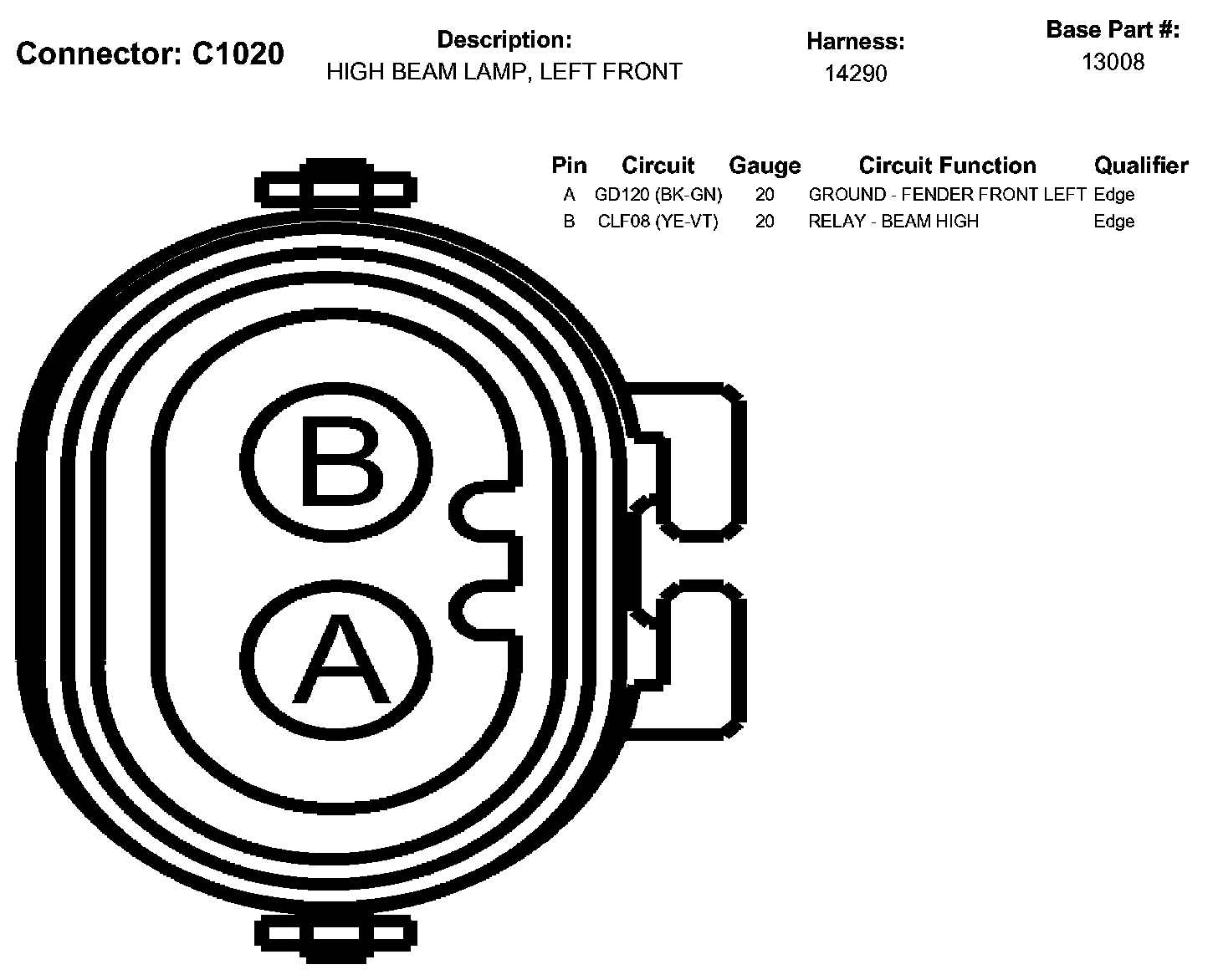 High Beam Lamp, Left Front