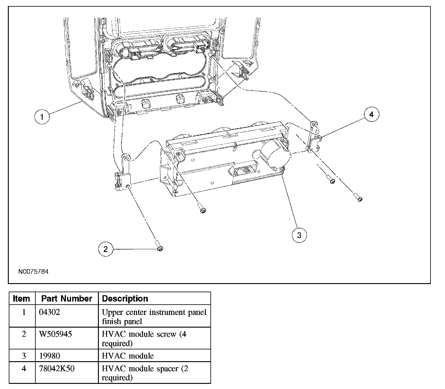 2. Remove the 4 HVAC module screws.