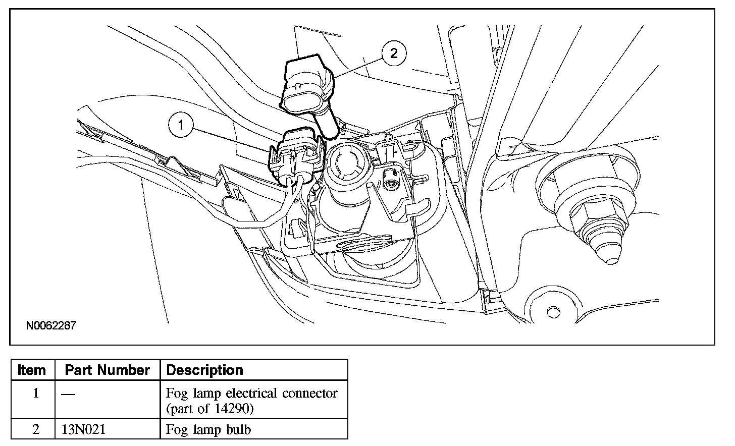 - The fog lamp bulb should not be removed from the fog lamp until just before a new bulb is installed. Removing the bulb for an extended period of time may affect fog lamp bulb performance. Contaminants may enter the fog lamp where they can settle on the lens and reflector. Never turn on the fog lamps with the bulb removed.